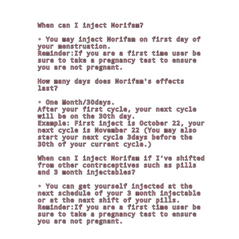 Norifam One Month Injectable Contraceptive Pinay Mama